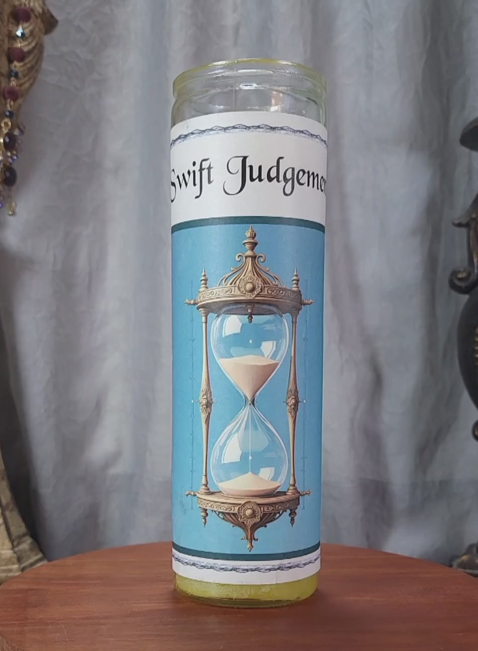 Our Swift Judgment candle is used to speed up legal processes and to ensure that judgments in court cases are fair and just. It’s ideal for anyone waiting for swift and favorable outcomes in legal matters.